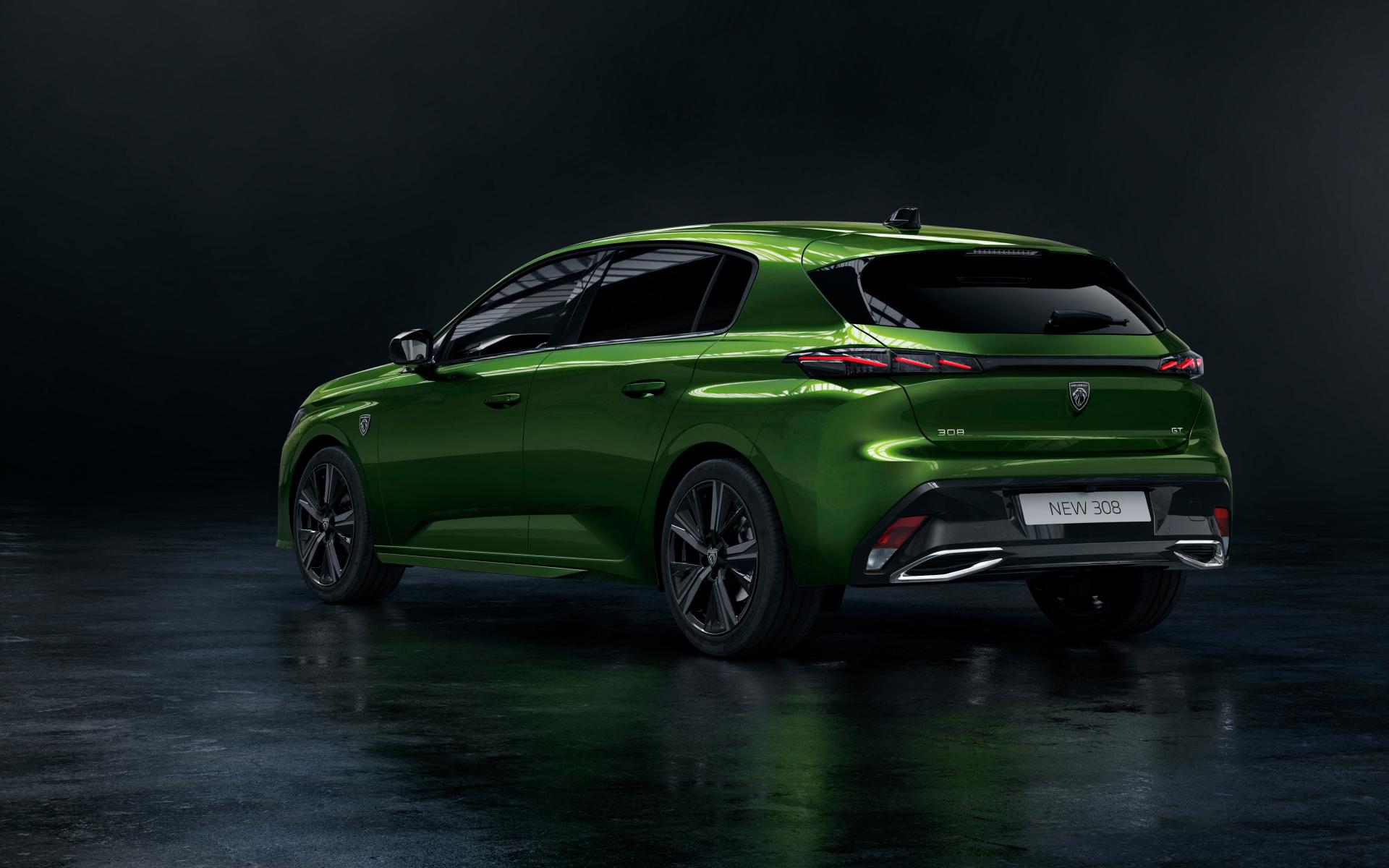 Wallpaper 2021 Peugeot 308 car rear view on black background