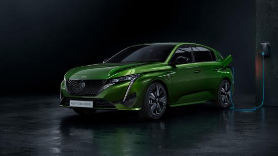 Wallpaper Green car Peugeot 308, 2021 at a gas station