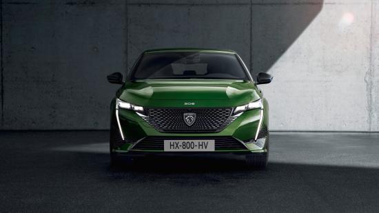 Wallpaper 2021 Peugeot 308 car front view against wall background