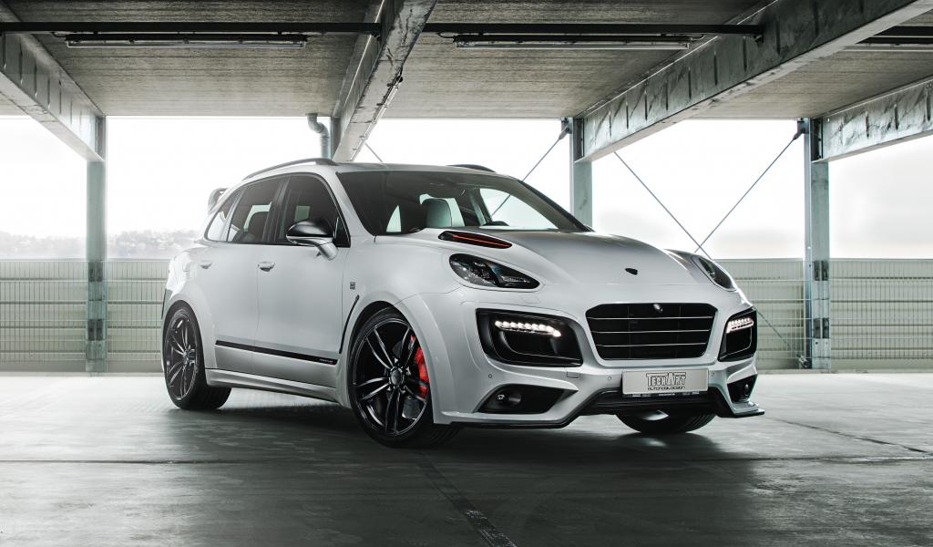 Wallpaper White car Porsche Cayenne in the garage