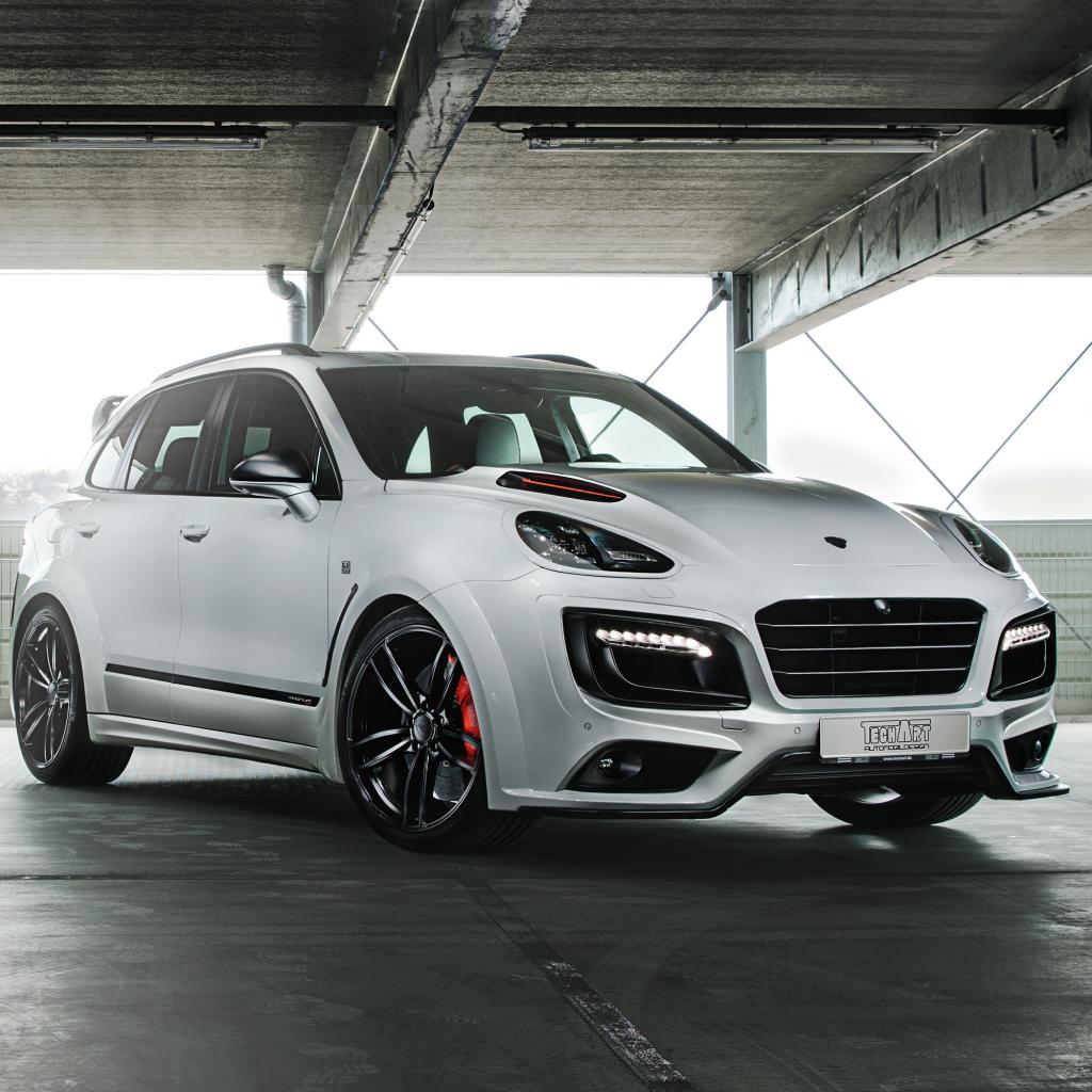 Wallpaper White car Porsche Cayenne in the garage