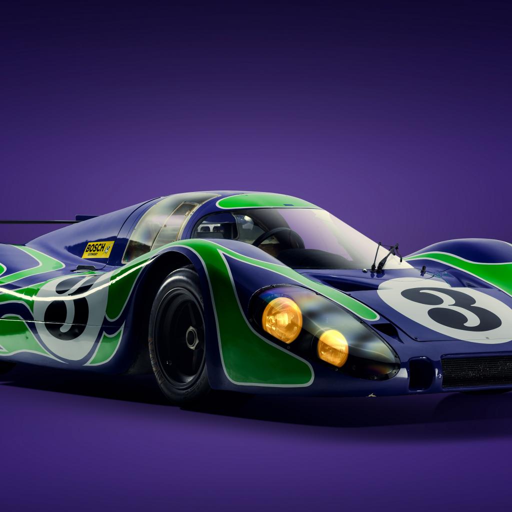 Wallpaper Racing car Porsche 917 Langheck on a lilac background