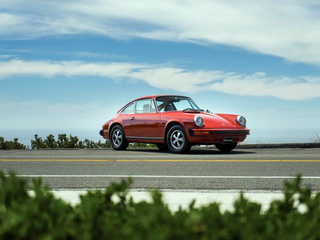 Wallpaper Red car Porsche 912 against the blue sky