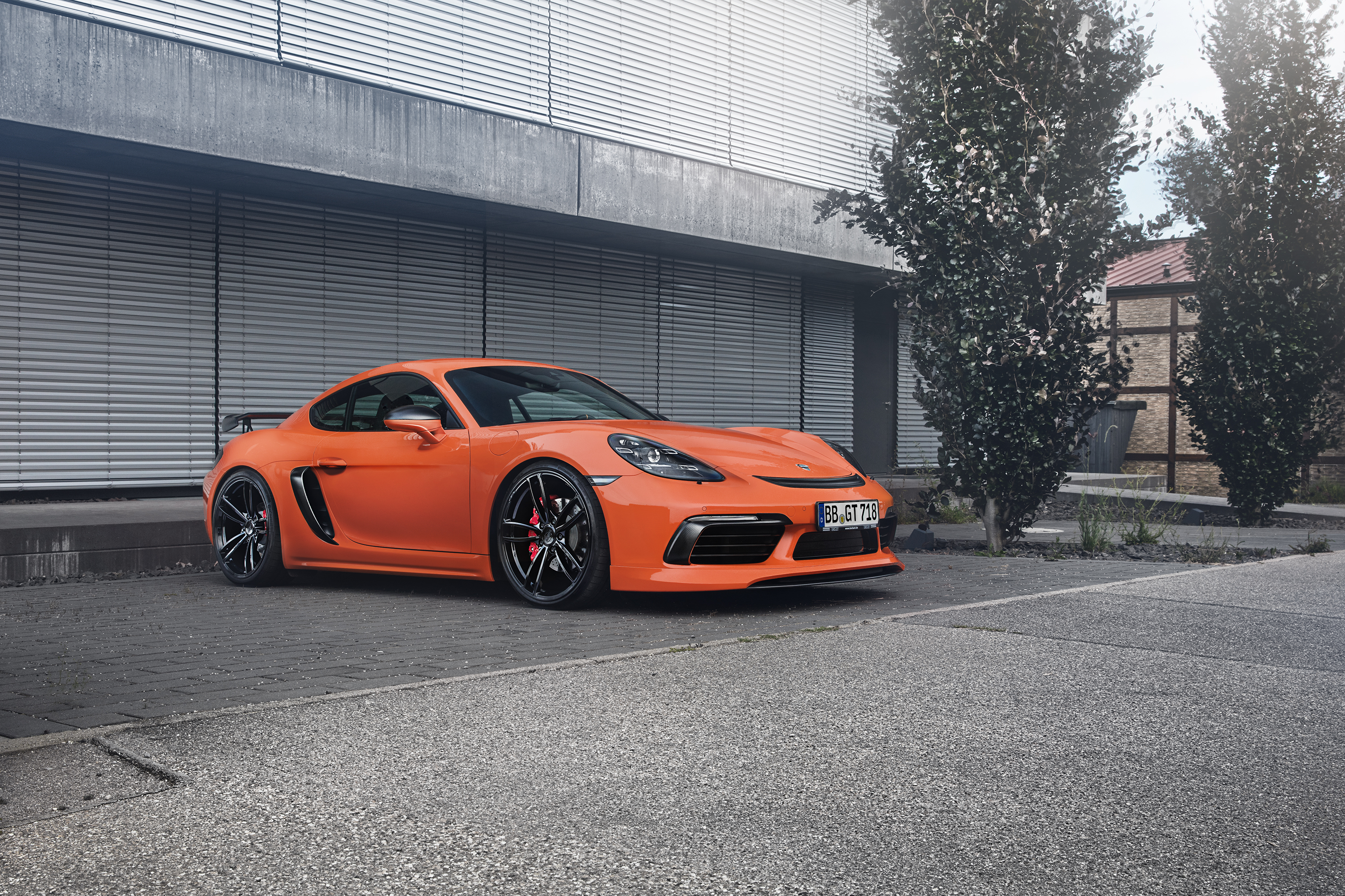 Wallpaper Orange car Porsche TechArt 718 Cayman, 2017