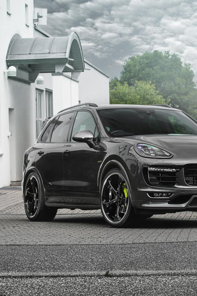 Wallpaper Silver Porsche Cayenne car is at home