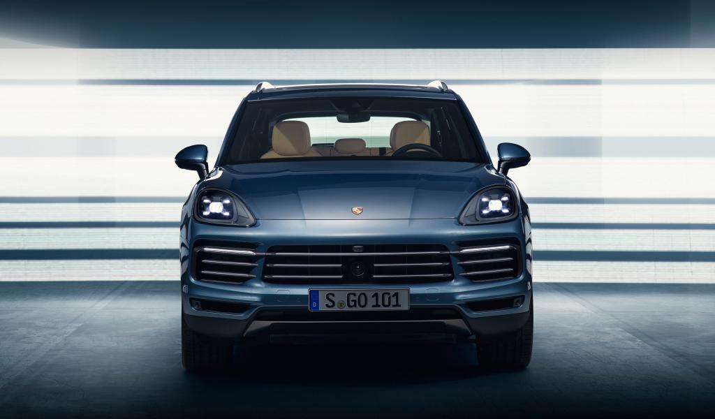 Wallpaper Blue car Porsche Cayenne, 2018 front view