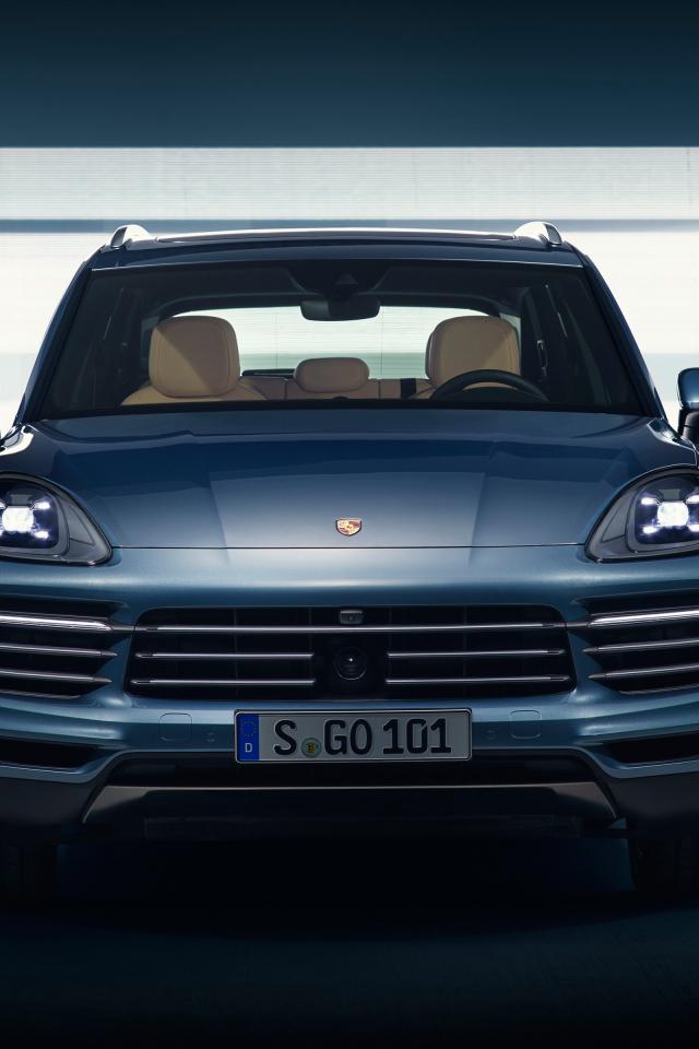 Wallpaper Blue car Porsche Cayenne, 2018 front view
