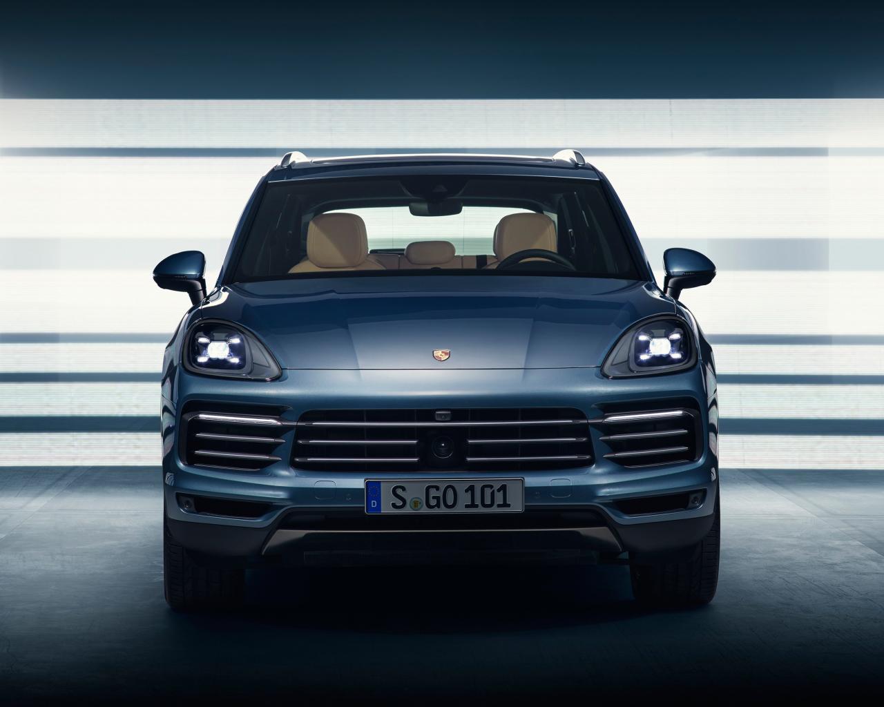 Wallpaper Blue car Porsche Cayenne, 2018 front view