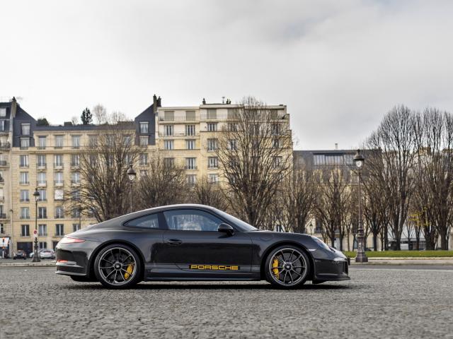 Wallpaper Black sports car Porsche 911 in the city