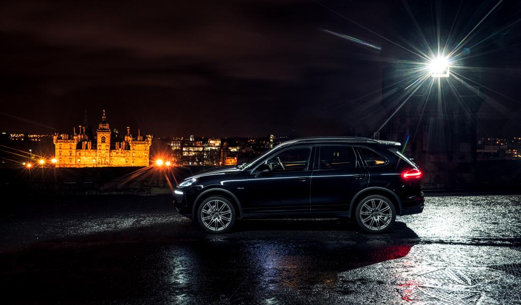 Wallpaper Black car Porsche Cayenne in the light of a lantern