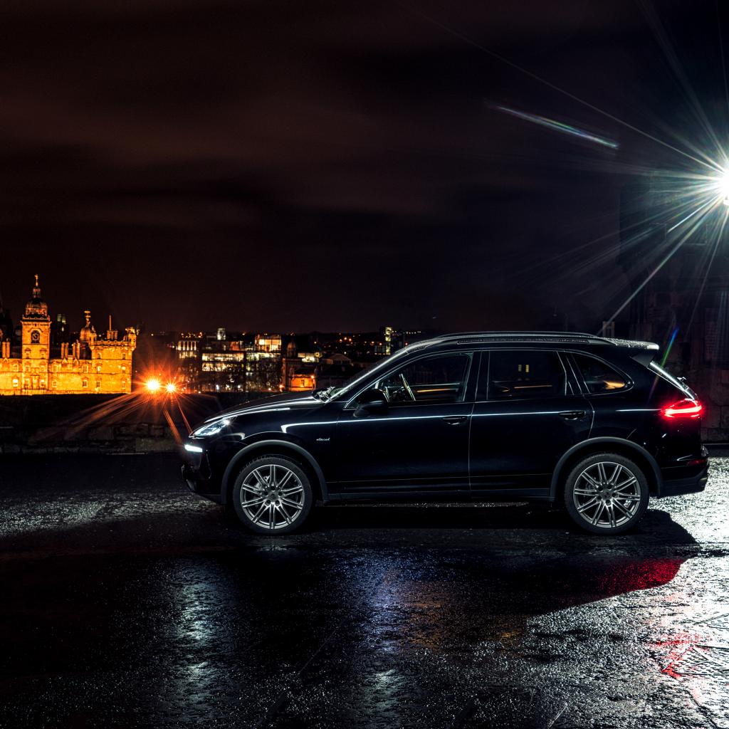 Wallpaper Black car Porsche Cayenne in the light of a lantern