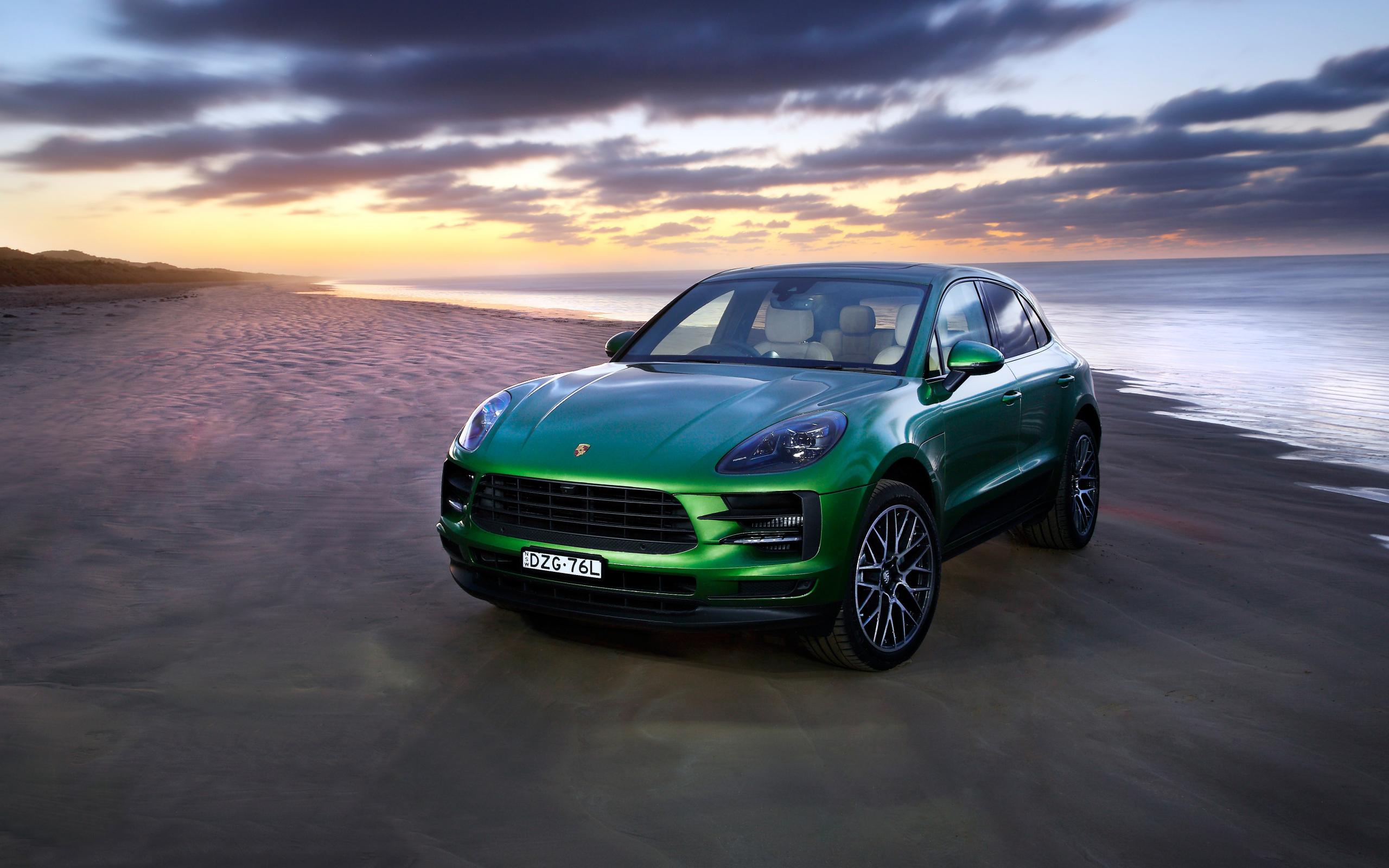 Wallpaper Green car Porsche Macan S 2019 on the ocean