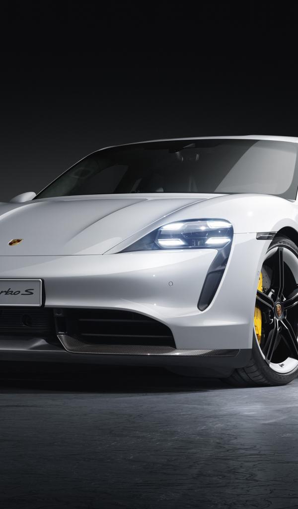 Wallpaper Silver 2018-2019 Porsche Taycan Turbo S on a gray background