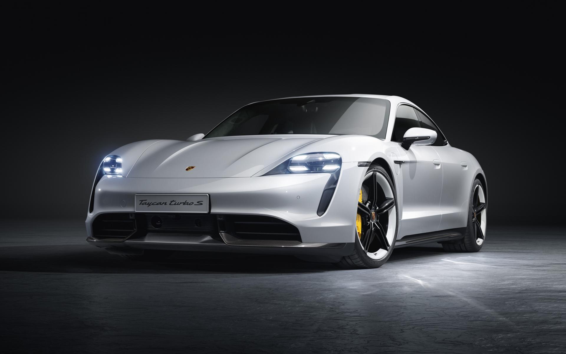 Wallpaper Silver 2018-2019 Porsche Taycan Turbo S on a gray background