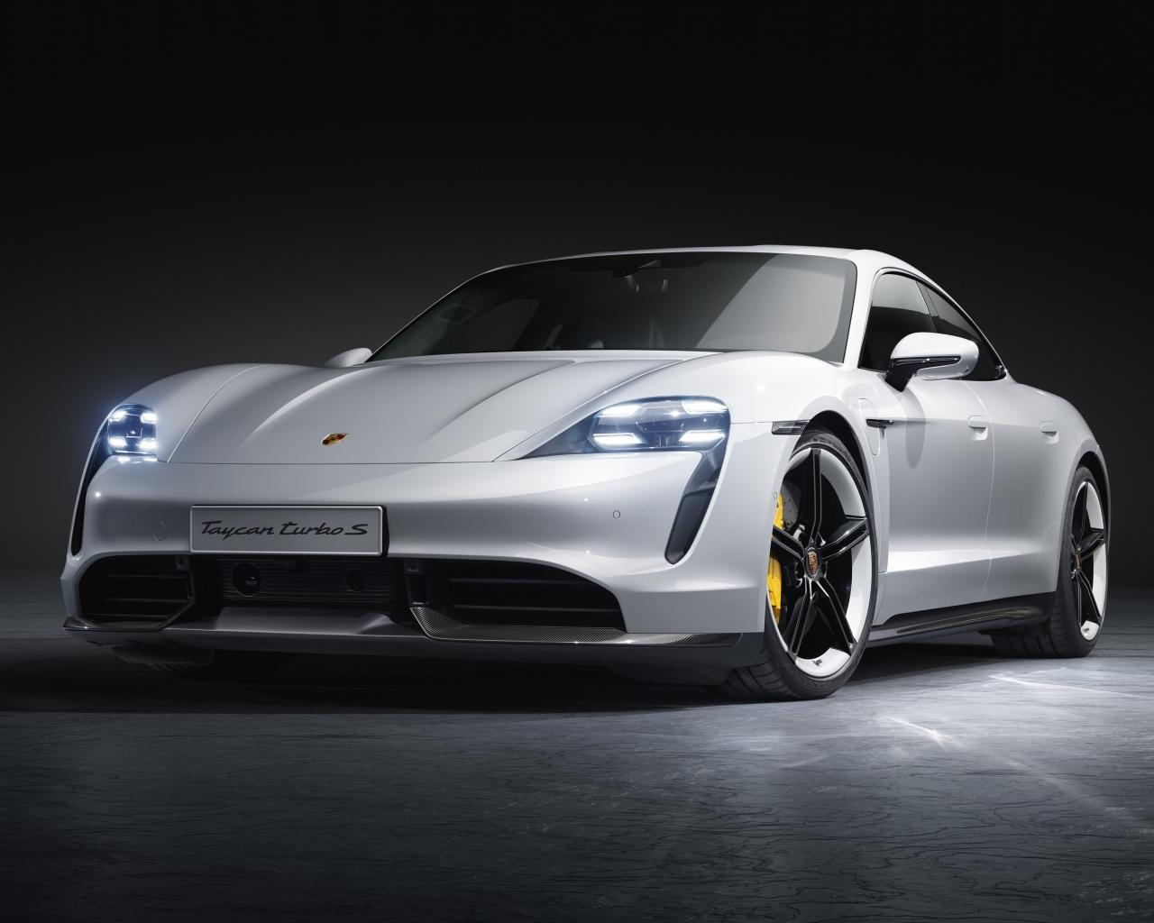 Wallpaper Silver 2018-2019 Porsche Taycan Turbo S on a gray background