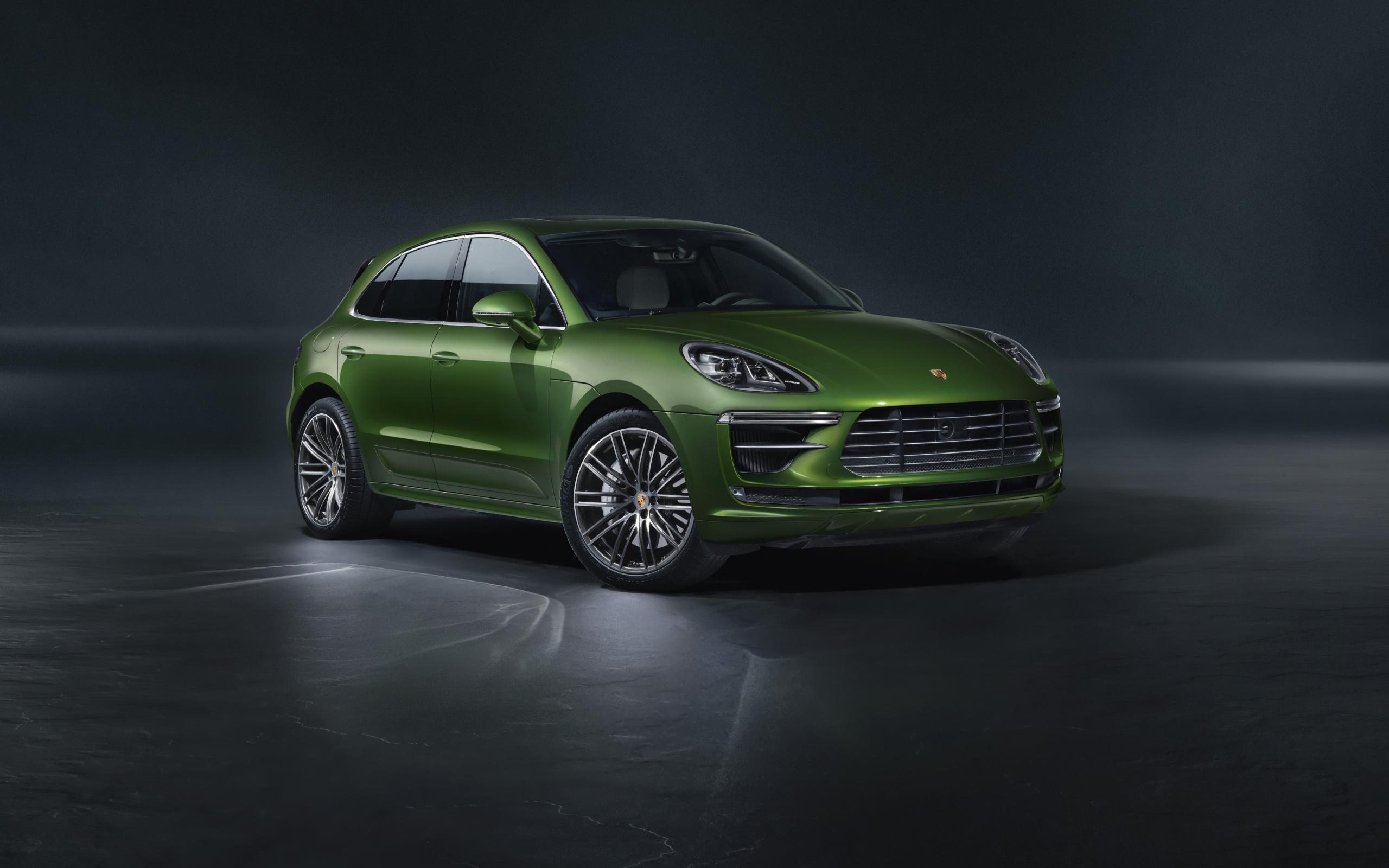 Wallpaper Green 2019 Porsche Macan Turbo car on a gray background