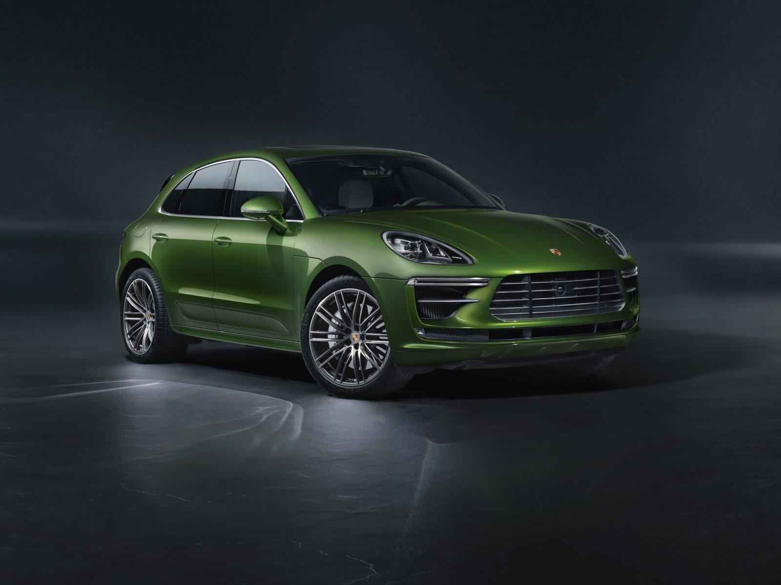 Wallpaper Green 2019 Porsche Macan Turbo car on a gray background