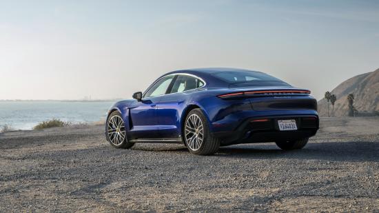 Wallpaper Blue Porsche Taycan 2020 car rear view