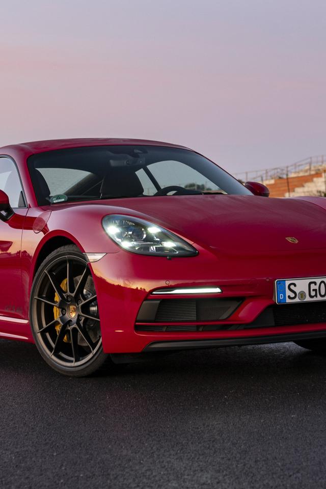 Wallpaper Red car Porsche 718 Cayman GTS 4, 2020 at the stadium