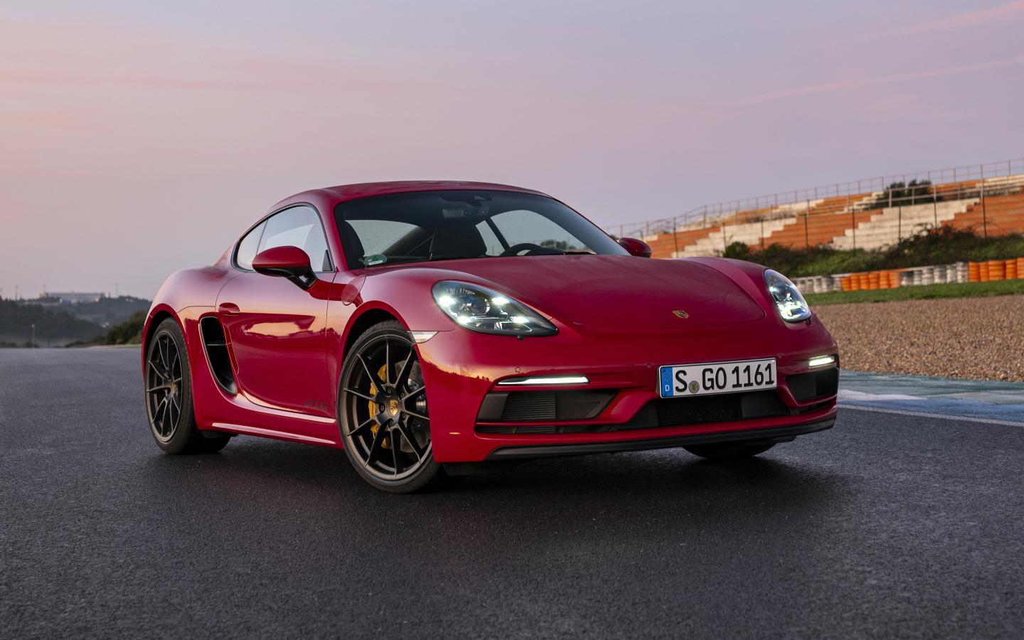 Wallpaper Red car Porsche 718 Cayman GTS 4, 2020 at the stadium