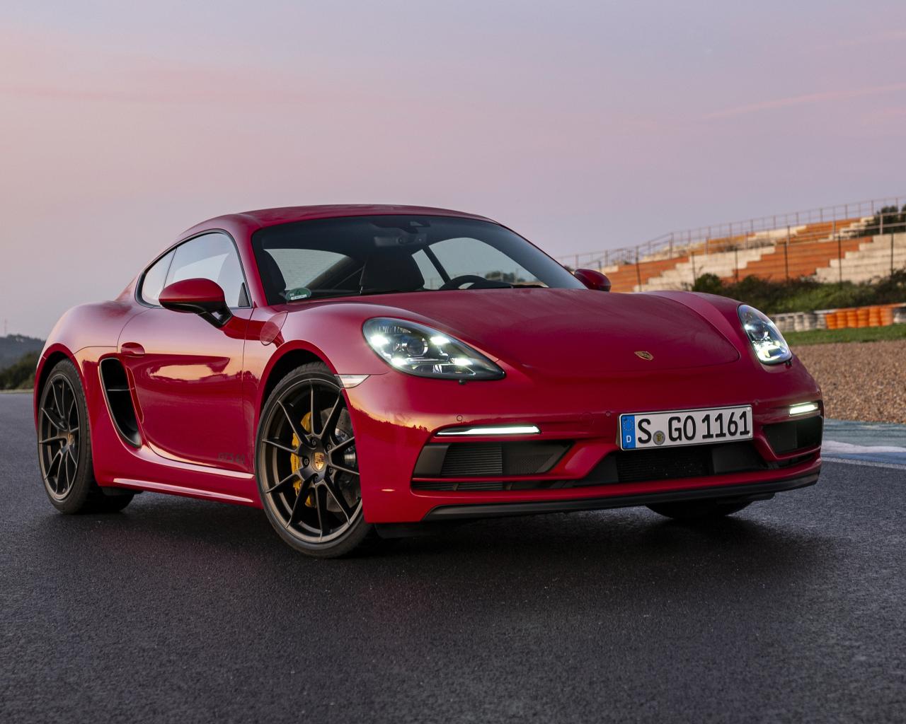 Wallpaper Red car Porsche 718 Cayman GTS 4, 2020 at the stadium