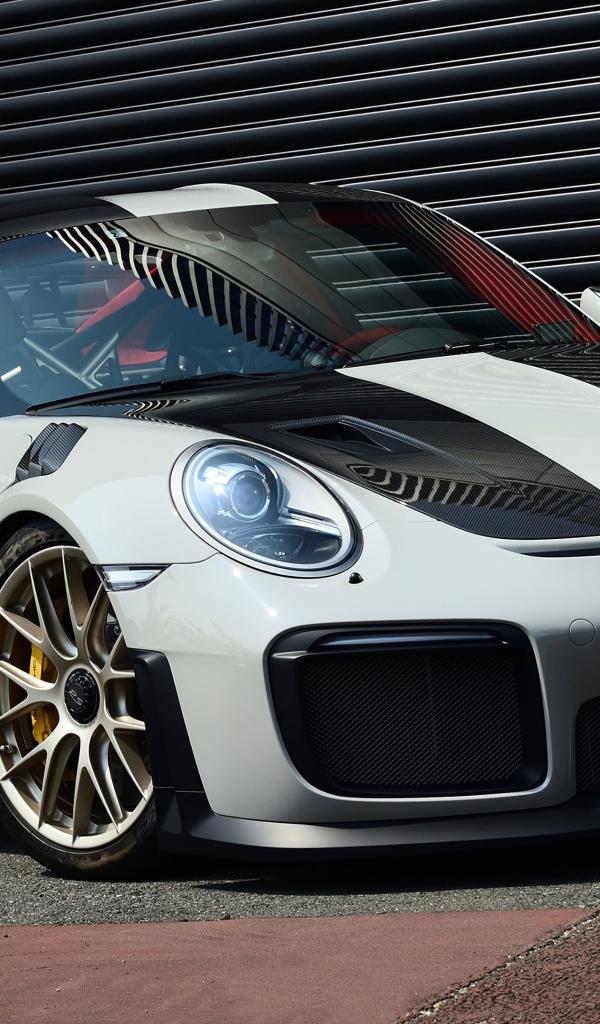 Wallpaper White car Porsche 911 GT2 RS against a black wall