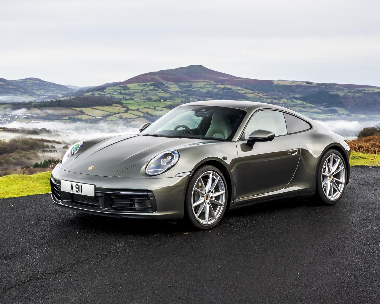 Wallpaper Silver car Porsche 911 Carrera on a background of hills