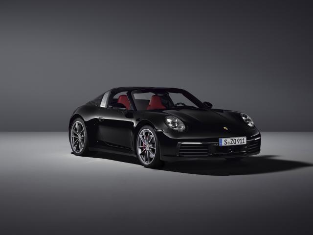 Wallpaper Black cabriolet Porsche 911 Targa 4S 2020 on a gray background