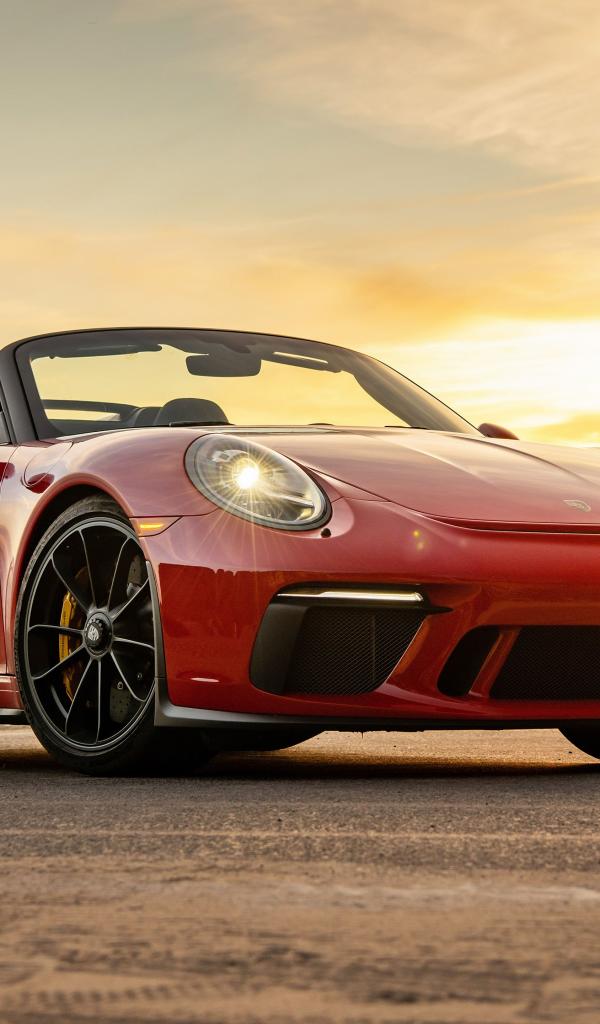Wallpaper Red convertible Porsche 911 Speedster, 2019 at sunset