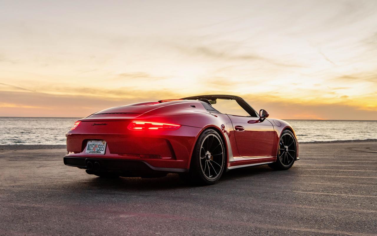 Wallpaper Red car Porsche 911 Speedster, 2019 by the sea at sunset