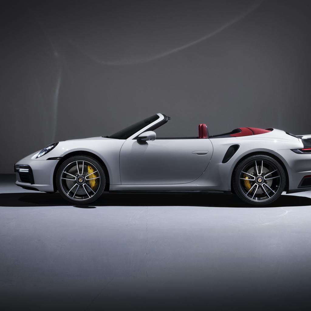 Wallpaper White 2020 Porsche 911 Turbo S Cabriolet on a gray background