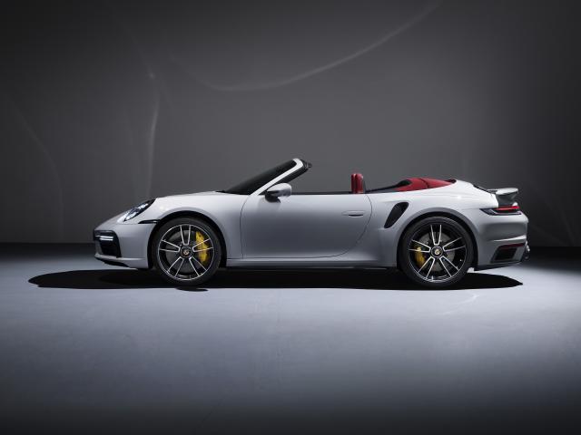 Wallpaper White 2020 Porsche 911 Turbo S Cabriolet on a gray background