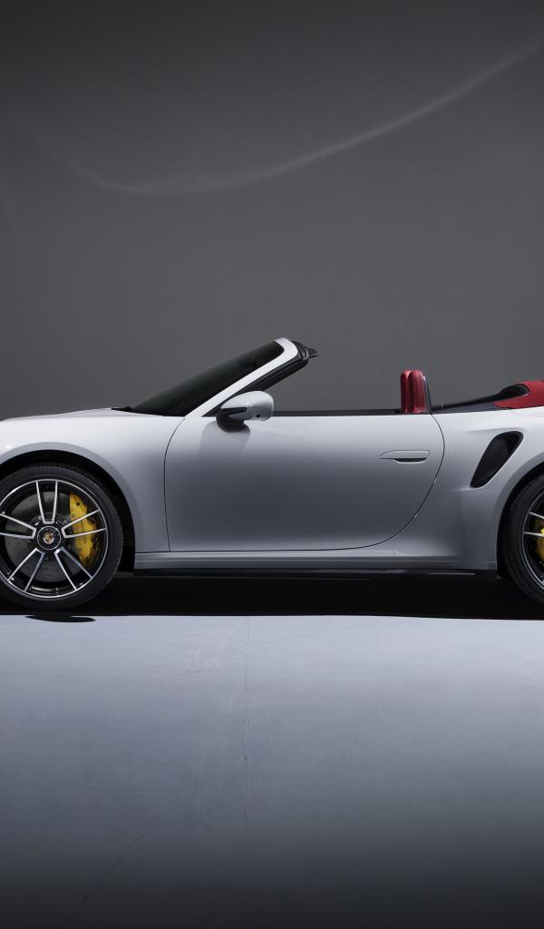 Wallpaper White 2020 Porsche 911 Turbo S Cabriolet on a gray background