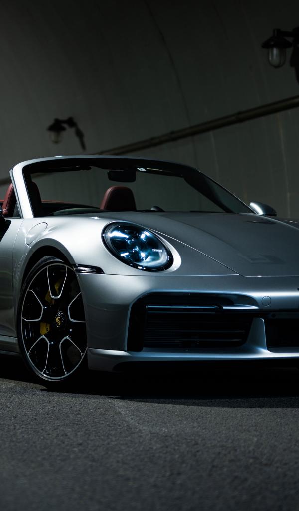 Wallpaper 2021 Silver Porsche 911 Turbo S Cabriolet in the tunnel
