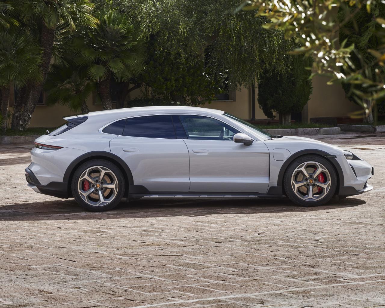 Wallpaper 2021 Porsche Taycan 4S Cross Turismo silver car at home