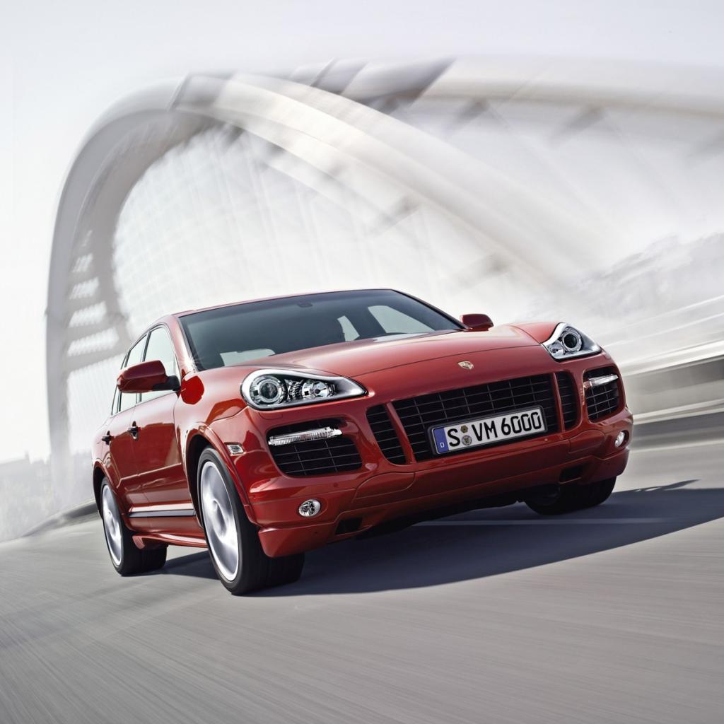 Wallpaper Red Porsche on a city bridge