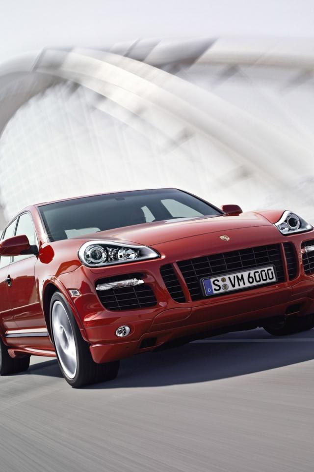 Wallpaper Red Porsche on a city bridge