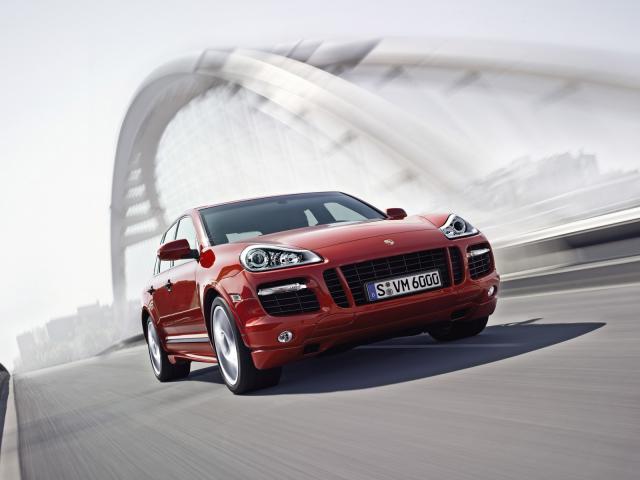 Wallpaper Red Porsche on a city bridge