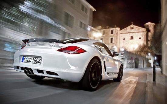 Wallpaper White Porsche Boxter on a city street