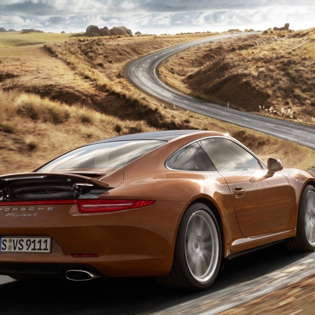 Wallpaper Brown Porsche on the highway outside the city