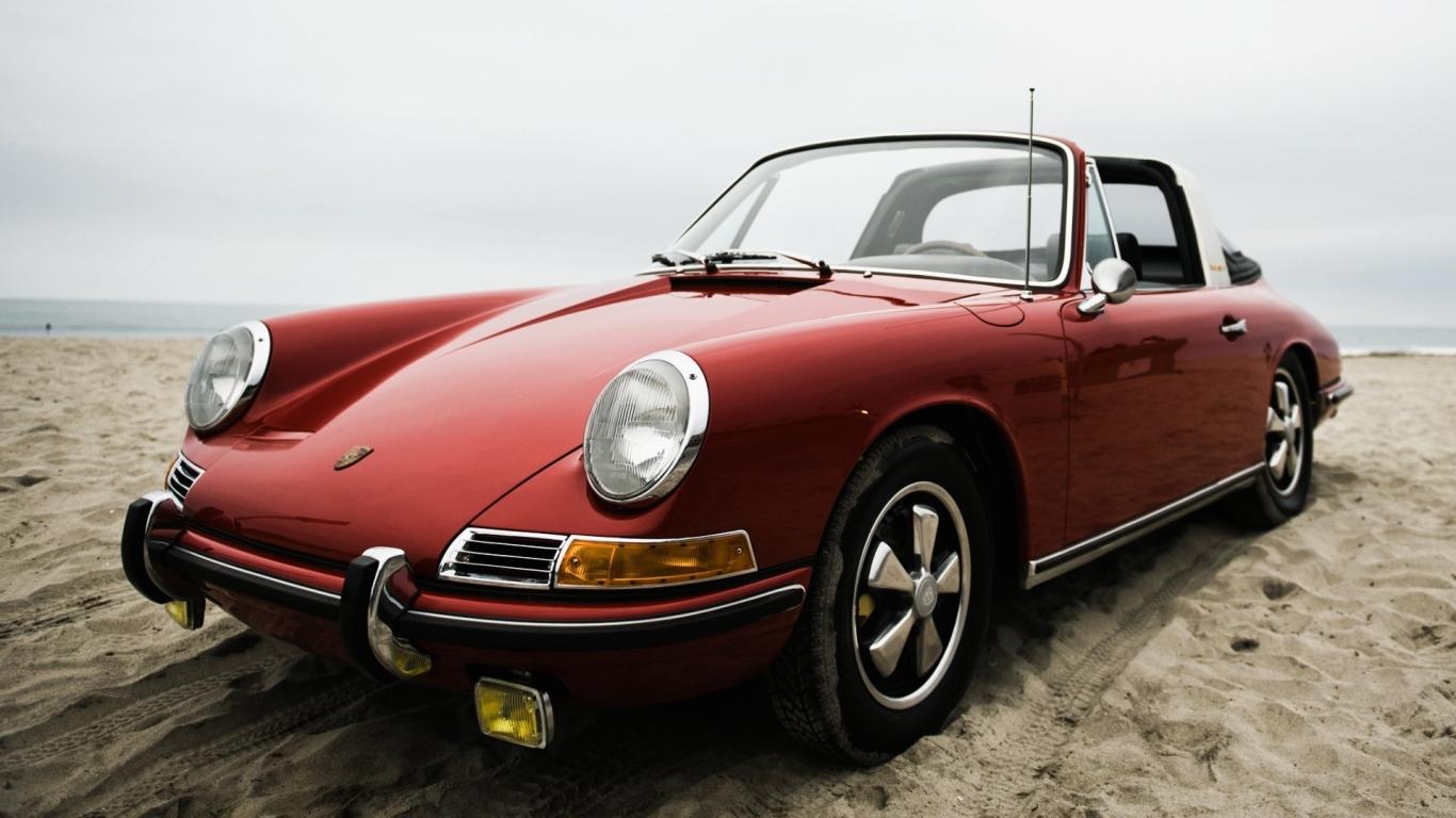 Wallpaper Old Porsche on the beach
