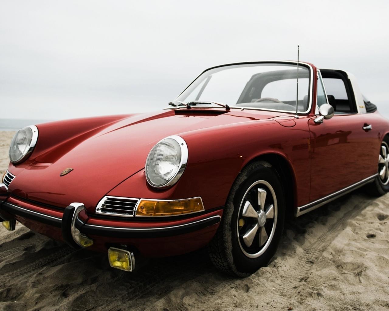 Wallpaper Old Porsche on the beach