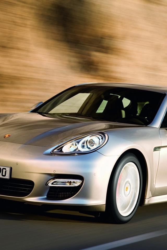 Wallpaper Silver Porsche on the road