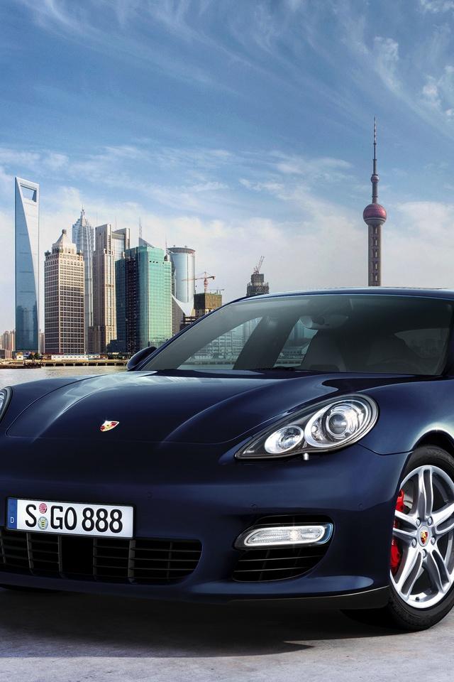 Wallpaper Porsche Panamera on city background