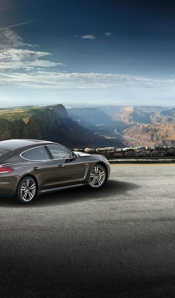 Wallpaper Porsche Panamera Turbo S 2014 in the parking in the hills