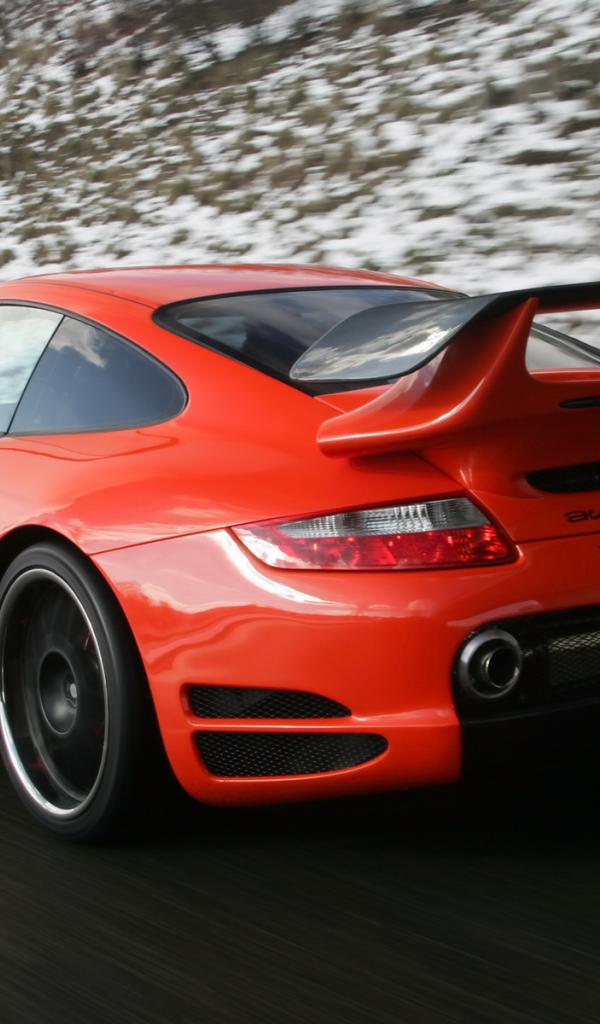 Wallpaper Red Porsche on winter road