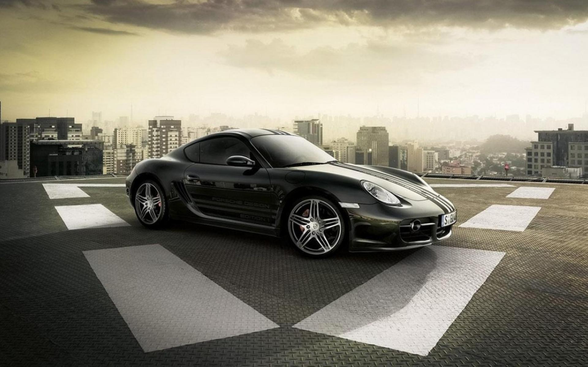 Wallpaper Porsche Cayman on the helipad