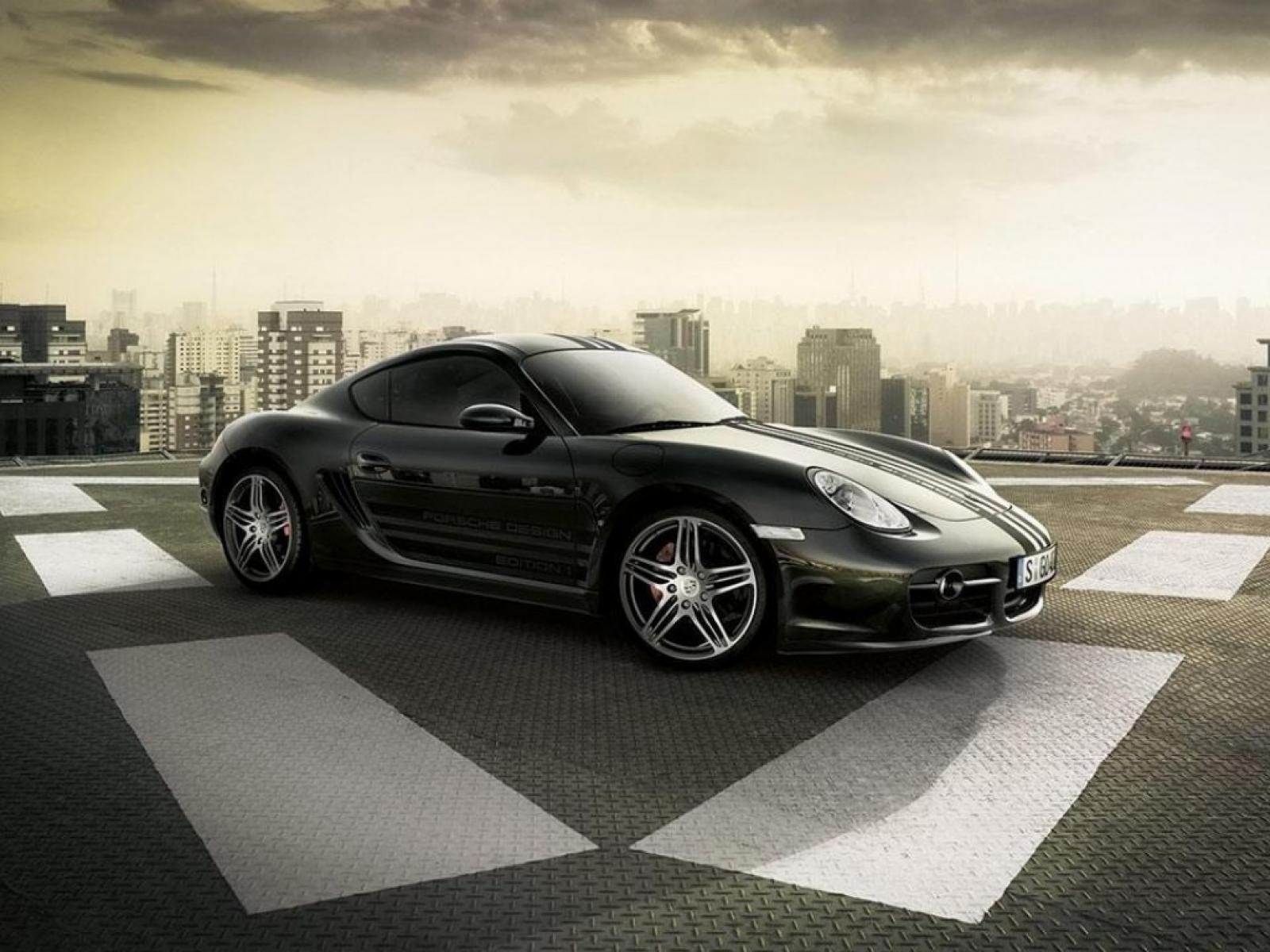 Wallpaper Porsche Cayman on the helipad