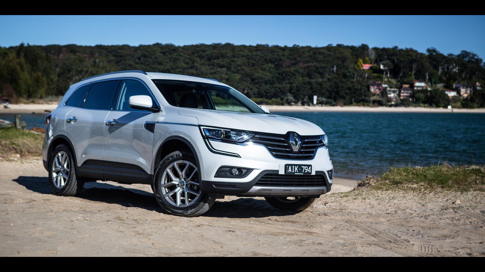 Wallpaper White car Renault Koleos at the pond