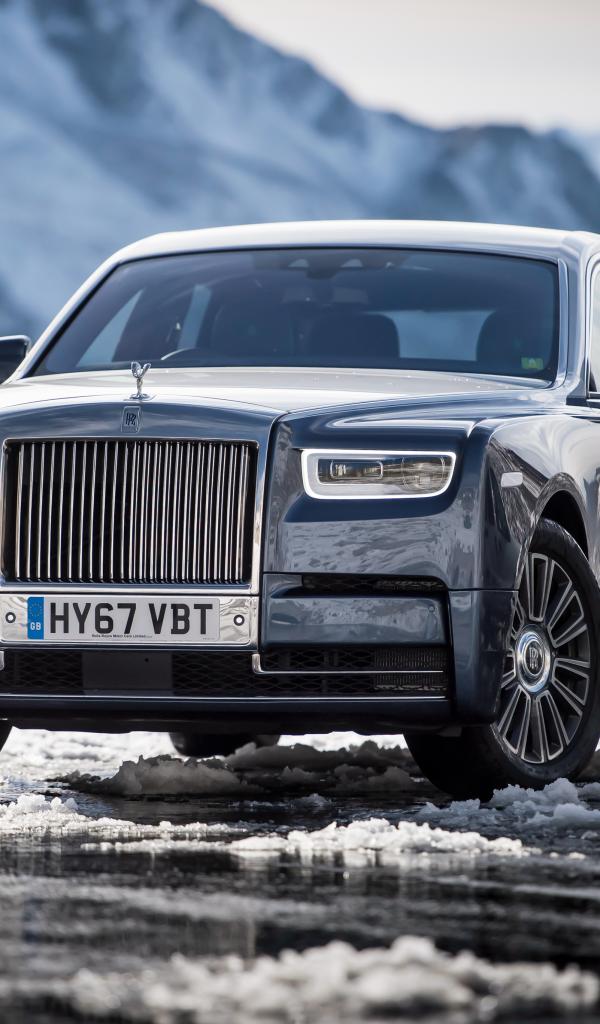 Wallpaper Stylish car Rolls-Royce Phantom, 2017 on a slippery road